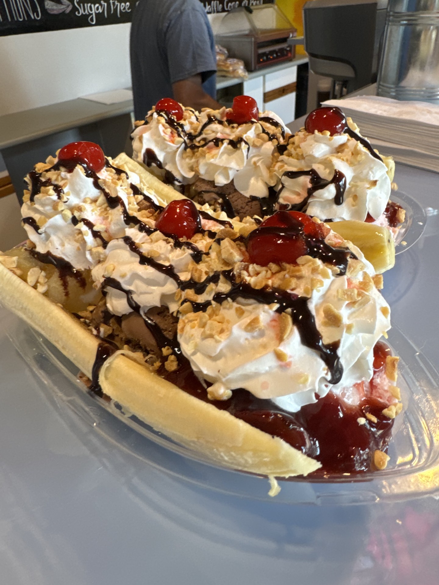 🍒 Sundaes & Banana Splits – Piled high with toppings and whipped cream