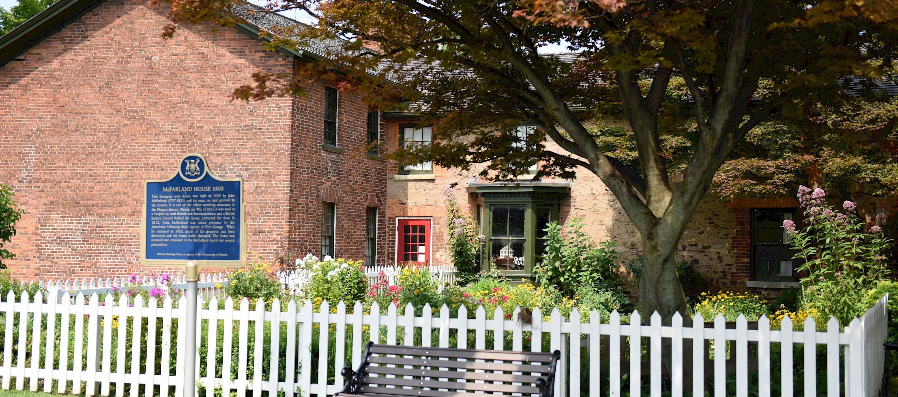 The home is of particular historical significance as it survived the burning of Newark, a tragedy that took place when the American forces occupying Fort George retreated from the area in December 1813. This makes McFarland House one of the oldest structures in Niagara-on-the-Lake, as well as the oldest building owned by The Niagara Parks Commission. The garden at McFarland House is illustrative of a typical mid-19th-century dooryard garden. Gardens located in the dooryard (typically defined as the area between the house and the nearby kitchen or barn) were usually used for both culinary and decorative purposes. McFarland House thanks to the Garden Club of Niagara for their planning and upkeep of the garden. Restored by The Niagara Parks Commission in 1959, McFarland House is furnished in the Empire style and portrays life in Niagara between 1800 and 1830.
